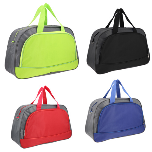 Maleta de poliéster, con compartimiento frontal, asas sujetadoras y asa regulable.