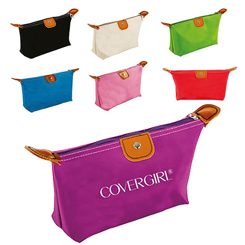 Cosmetiquera con cierre y broche.