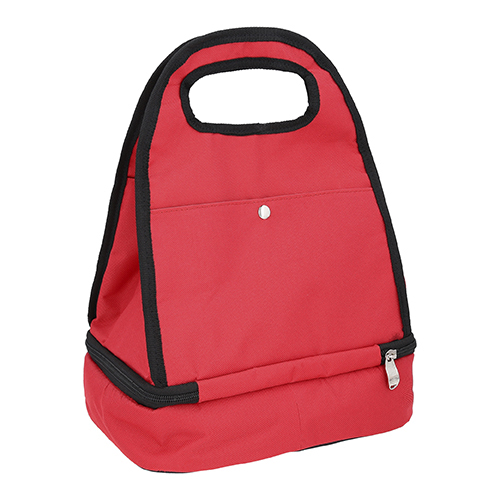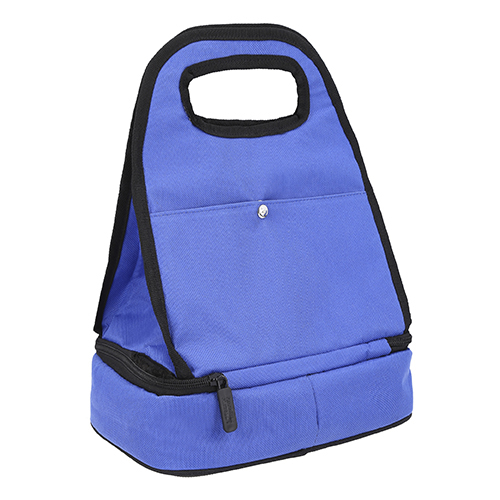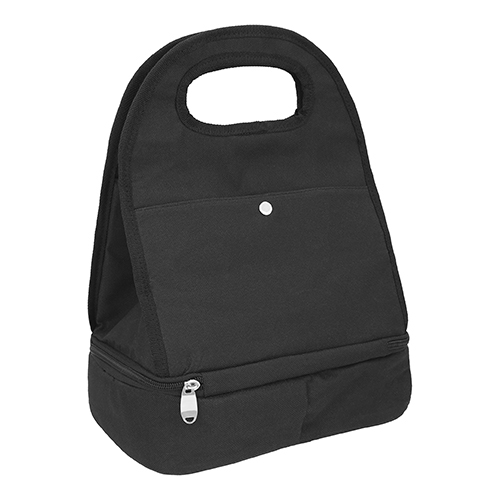Lonchera de dos compartimientos de cierre con interior térmico, dos bolsas exteriores frontal de botón y trasera con cierre.
